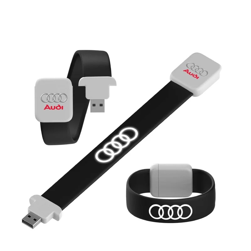 這款定制 USB 手環在傳統手環基礎上升級,增設發光 logo 設計。采用柔軟親膚的硅膠材質,佩戴舒適無束縛感。運動或通勤時可直接戴在手腕上,無需擔心 U 盤遺落在背包角落或會議桌上。插入設備后,手環正面的 logo 會自動發出柔和光芒,既方便在昏暗環境中快速定位 U 盤,又能瞬間凸顯品牌標識,實現實用性與高曝光度的雙重結合。